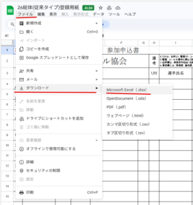 ☆下記のリンクにアクセス⇒ファイル⇒ダウンロード⇒エクセルを選択(メンバー追加届けはワードです)
